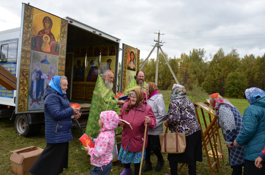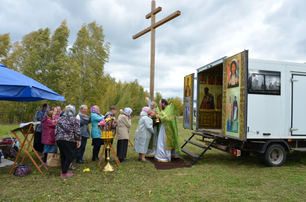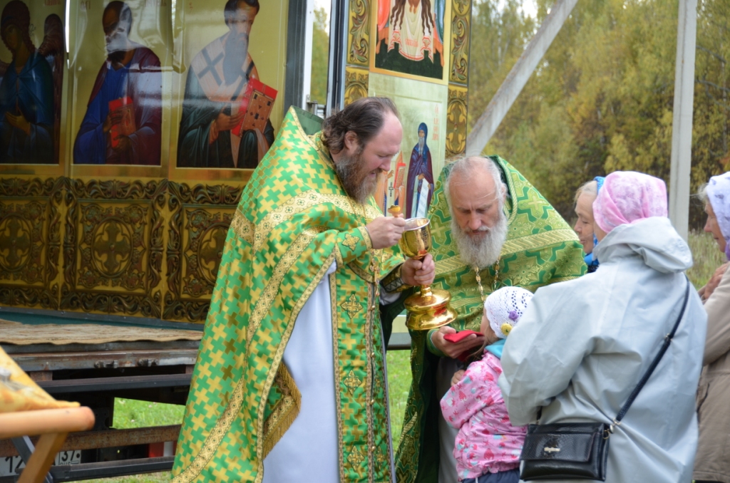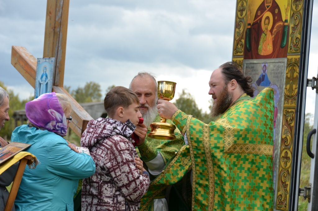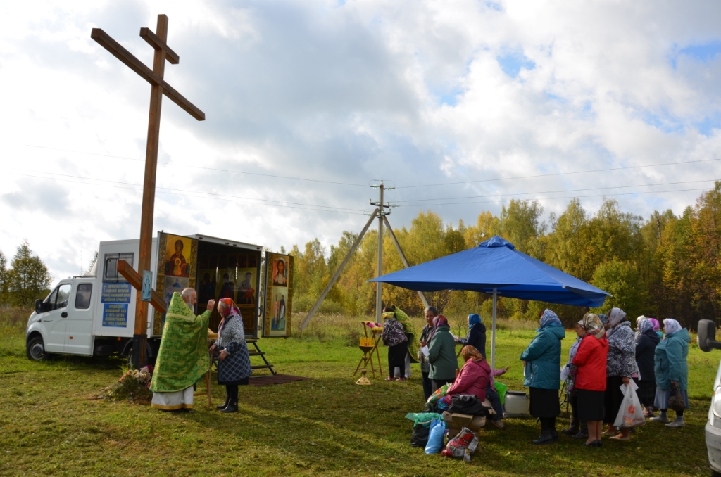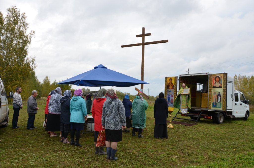 Богослужение совершалось в передвижном храме св. равноап. вел. кн. Владимира. Ранее на месте утраченных храмов трудами благочинного Лухского округа иерея Евгения Галкина и благотворителей был установлен поклонный крест.
