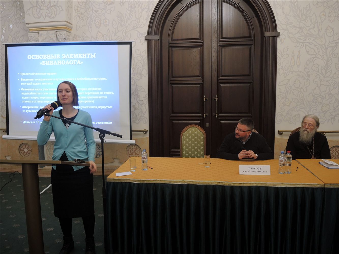 Ряд докладов описывал различный опыт организации и ведения библейской катехизации. В частности, интересный опыт ведения библейских групп — библиоблогов, приобретенный в Бельгии и Германии, представила Вероника Андросова, кандидат богословия (ПСТГУ), магистр образовательных исследований (университет г. Левена, Бельгия).